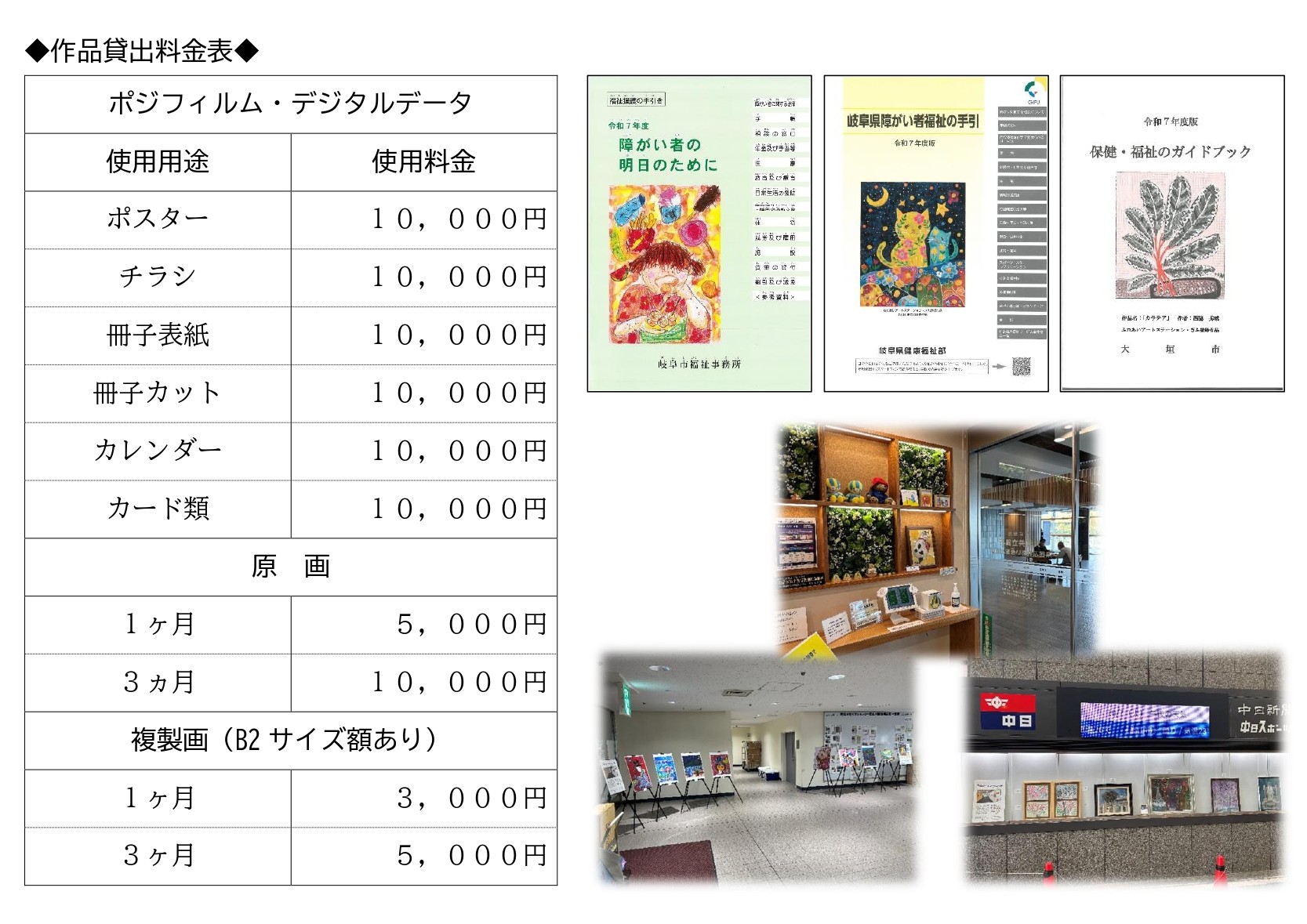 登録された作品はデータ化して保存し、官公庁や各種団体、企業等の印刷物への利用のほか、絵画や複製画の展示の呼びかけ、有償で貸し出します。